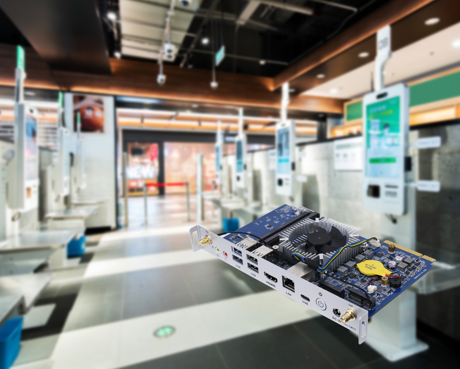 球盟会·QMH科技SDM-L613支持2xSO-DIMM DDR5-5200 MHZ,最大支持64GB,结合1 x M-Key M.2 (2280) PCIe4.0高速NVMe SSD,DDR5工作频率通常比DDR4更高,可以在单位时间内处理更多的数据,并且耗能更低,对于像自助机这样长时间运行且需要稳定散热的设备来说,节能和散热效果更好的内存可以降低设备的能耗和热量排放。