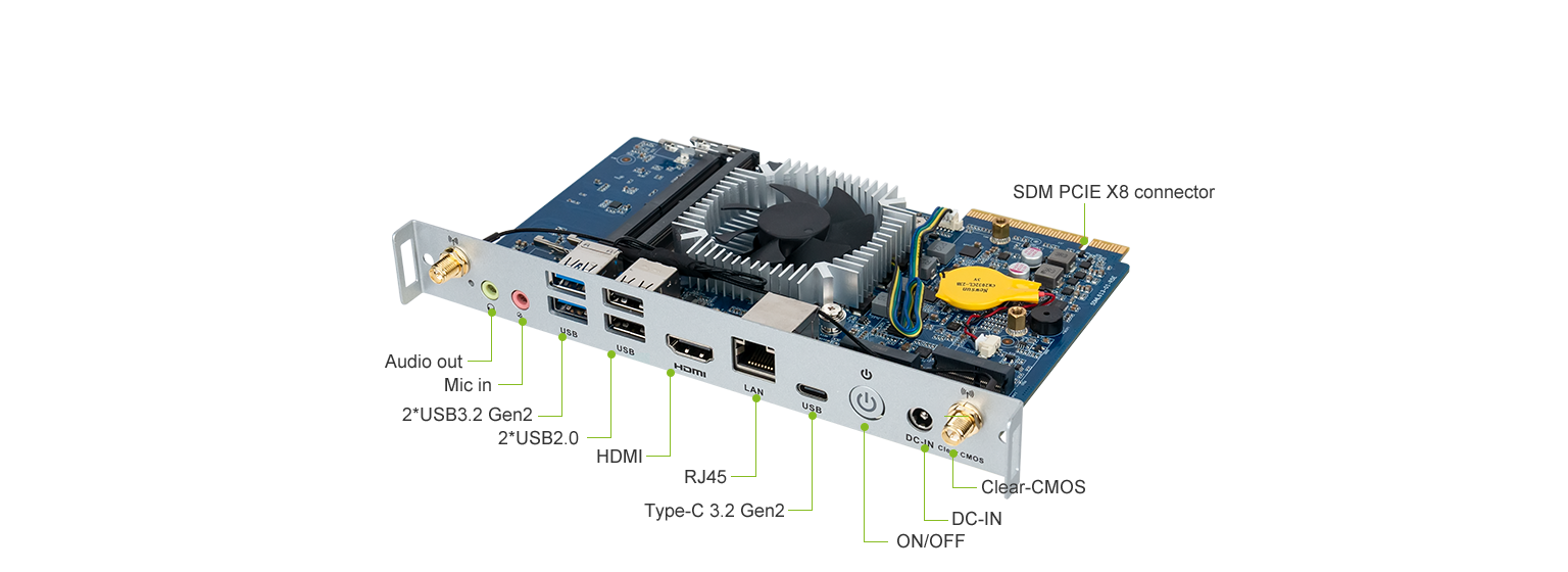 优秀的视频显示,球盟会·QMH科技SDM-L613拥有1个HDMI (7680 x 4320 @60 Hz)接口,支持60HZ刷新率,实现8k超清显示,SDM(PCIE X8)可以传输 HDMI2.0 (4096 x 2304 @60 Hz)、DP1.2 (4096 x 2304 @60 Hz)、USB3.2 Gen1、UART、GSPI、I2C、PCIe 和 SYS_FAN 信号连接。