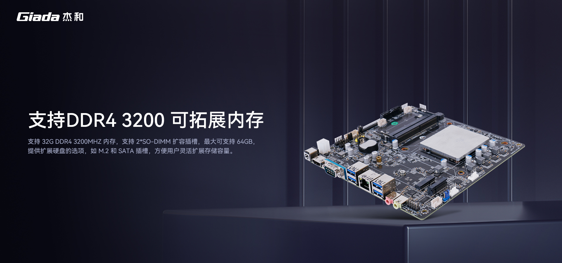 CB4-6121主板提供丰富的扩展接口,满足用户不同的需求。2个DDR4 SO-DIMM插槽,支持高达64GB的内存容量;支持4K显示,拥有1个HDMI ™ 2.0(支持Max.4096x2160@60Hz),1个LVDS( 双通道 24Bit 最高支持 1920*1080@60Hz),1个VGA(支持2048 x 1536@60Hz),让您轻松连接各种显示设备。