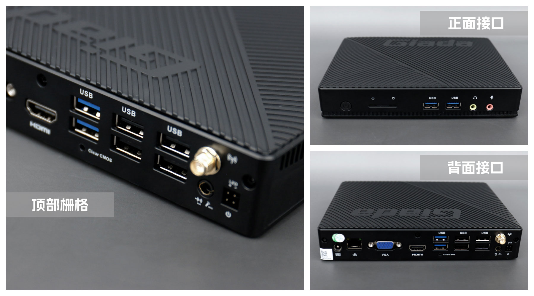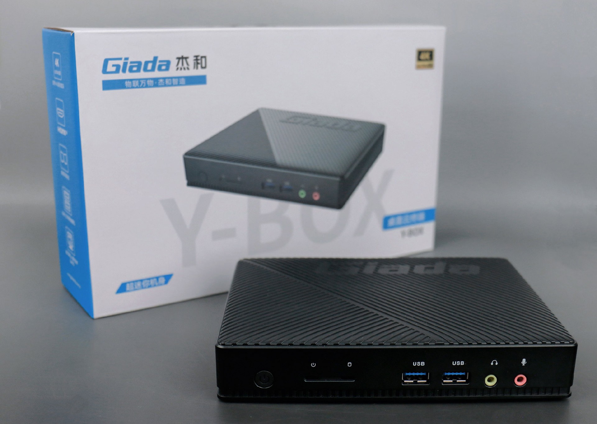 球盟会·QMH桌面云终端Y-BOX S2采用全新外观ID设计,主盖采用黑色哑光栅格,顶部刻印球盟会·QMHGiada品牌名,磨砂塑胶材质,高质感更轻盈。外包装采用简洁商务的风格设计,以球盟会·QMH蓝的配色作为点缀,内部采用严实防震的珍珠泡棉保护主机,同时,内部配备适配器、AC线、天线棒、螺丝包,满足通用需求。