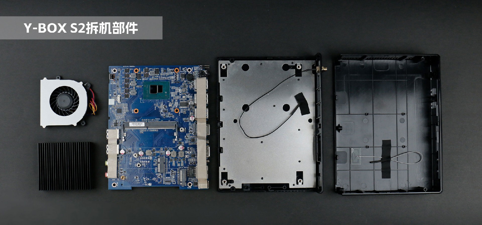 球盟会·QMH桌面云终端Y-BOX S2机壳由两片式塑胶壳组合而成,整机由上至下主要分为三个部分:顶部外壳、内部主板、底部外壳。底部外壳内附一层铝板防静电,以防主板被静电损坏。主板处理器顶部安装一体式铝板鳍片,并涂抹一层散热膏用于导热,提高散热强度。同时,主板中部安装强劲的风扇用于散热,降低内存与硬盘读取时受温度的影响,提高运行稳定性。