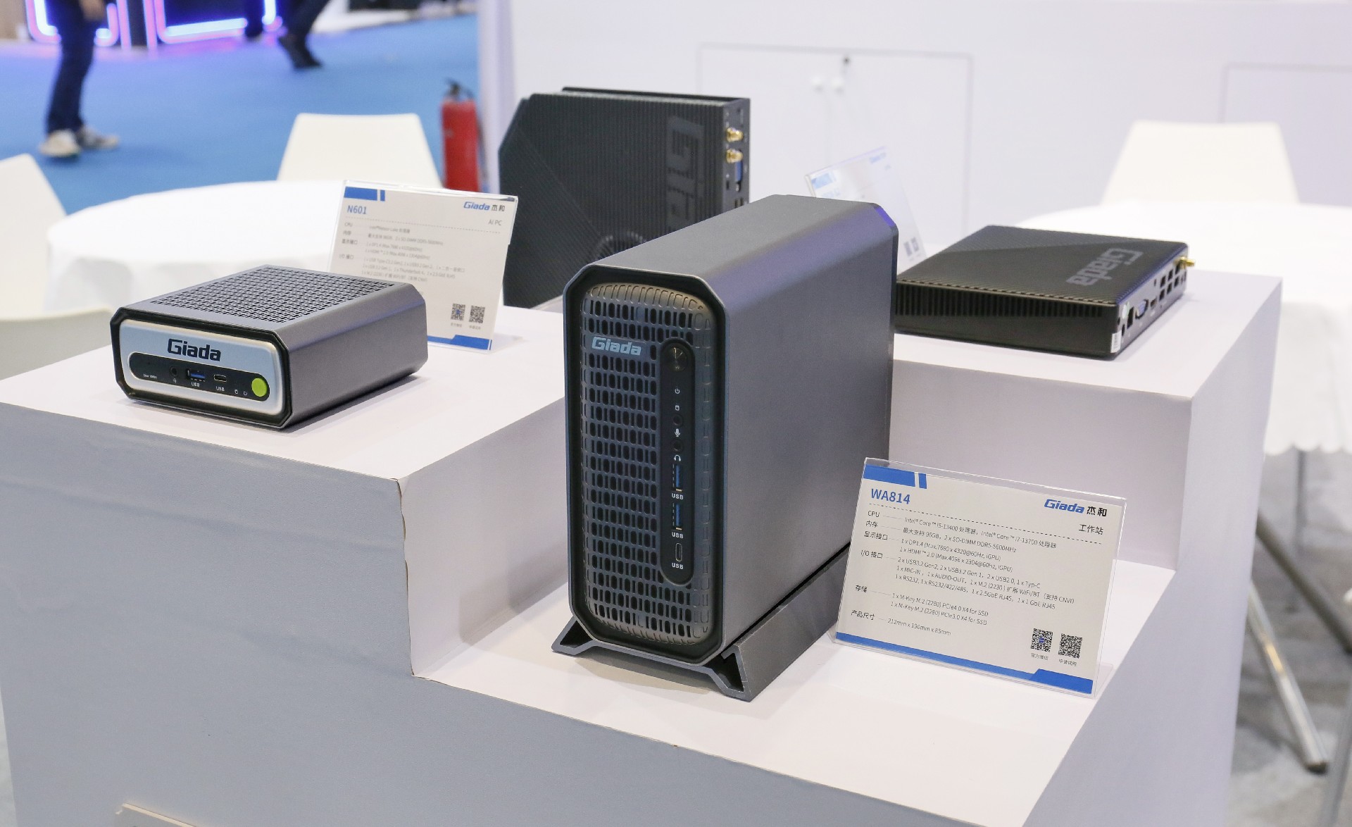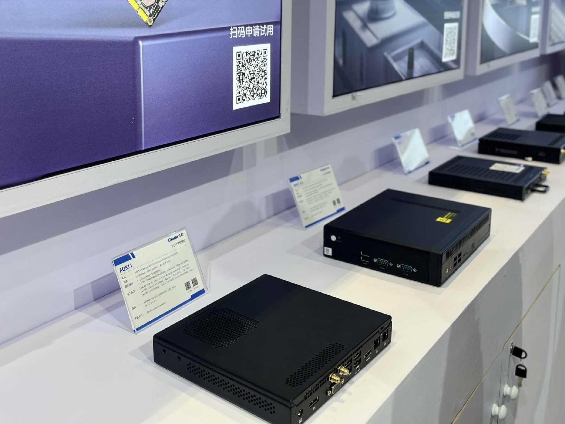 此外,球盟会·QMH科技带来了一系列工业计算机整机,有专为户外场景打造的宽温宽压的工业计算机整机AE613,还有最新推出的AF613-U1,可作为商场广告播放器,在餐厅、咖啡馆展示菜单与优惠,提升顾客体验。在地铁站、火车站、机场等交通枢纽,实时提供列车/航班信息、导向指示及广告宣传,优化信息服务。