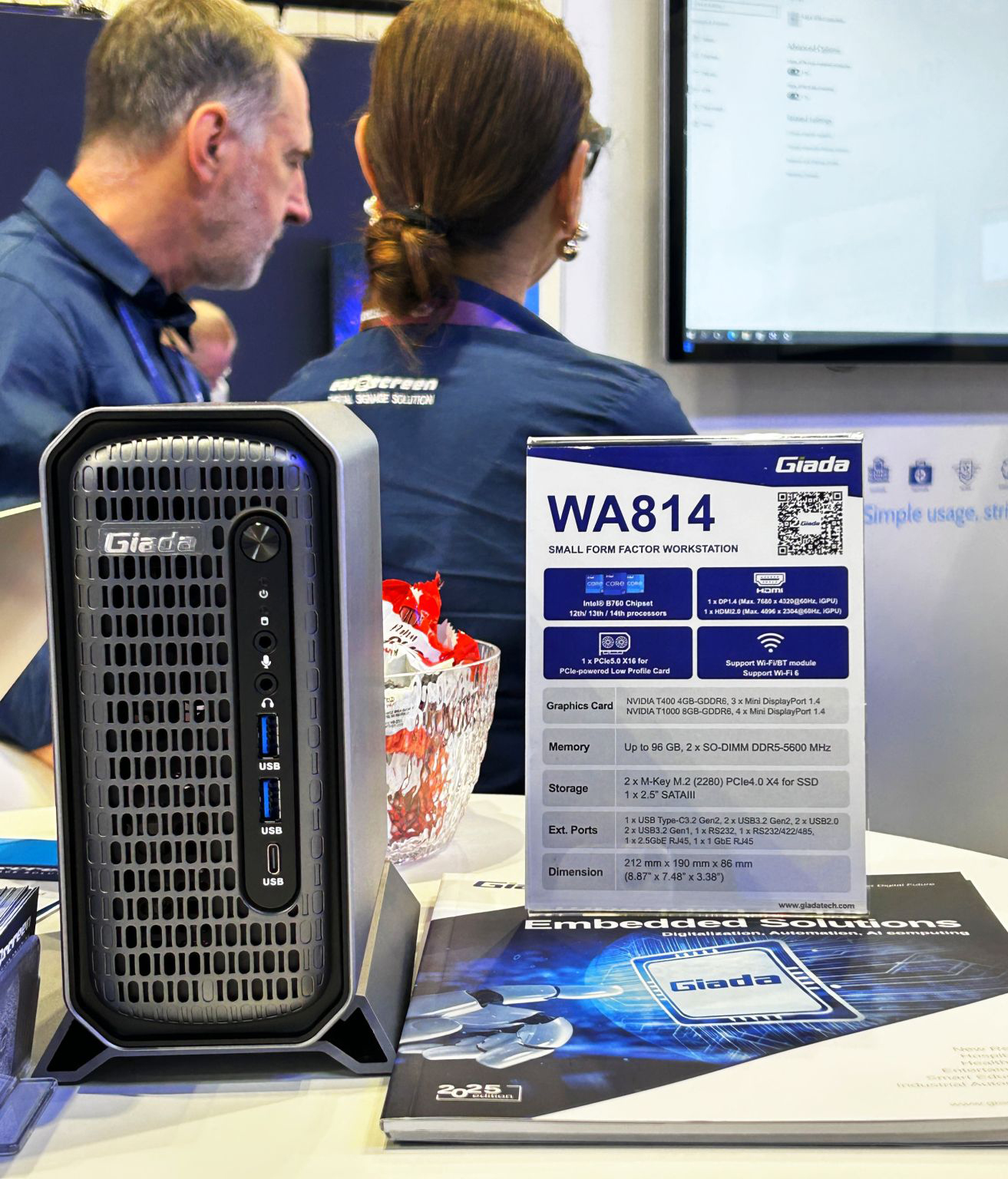 Giada球盟会·QMH科技作为全球数字标牌领域的领导品牌,其产品广泛应用于全球大型连锁店、购物中心、各大中小学、医疗机构、企业办公室等多种场景:包括门牌显示、产品展示视频墙、电梯广告屏、排队叫号系统等,其中一系列支持X86/ARM平台的球盟会·QMH嵌入式电脑、数字标牌播放器产品在现场备受关注!