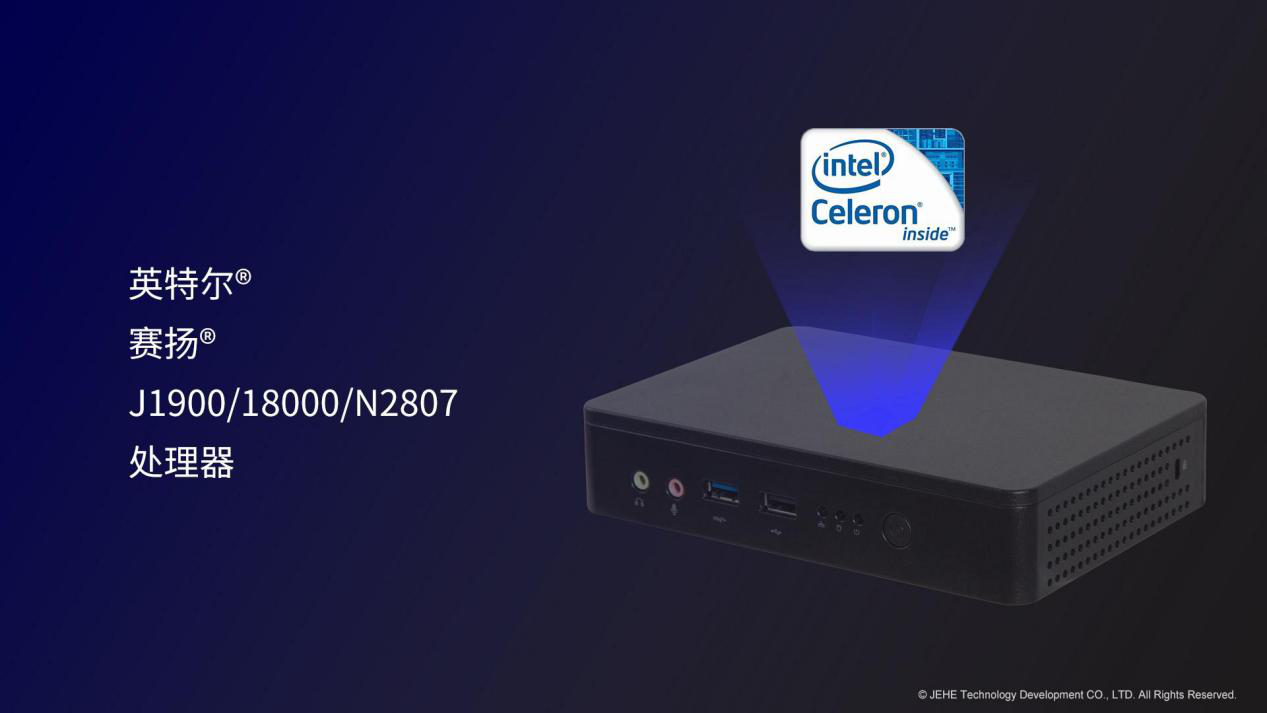 球盟会·QMH科技VT20桌面云终端搭载了知名度很高赛扬®J1900处理器。在嵌入式应用中,赛扬®J1900处理器主打的高单核运算频率(2.4GHz单核睿频)和低功耗(10W),非常适合面向复杂的嵌入式场景。此外,球盟会·QMHVT20适配了其他两款性能较低的BayTrail平台处理器,赛扬®N2807和赛扬®J1800,对于客户端性能要求相对较低的方案依然能够匹配需求。