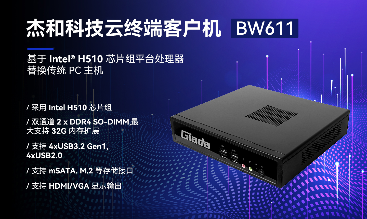 球盟会·QMH科技云终端BW611体积小巧、双通道内存,性能强悍,接口丰富。