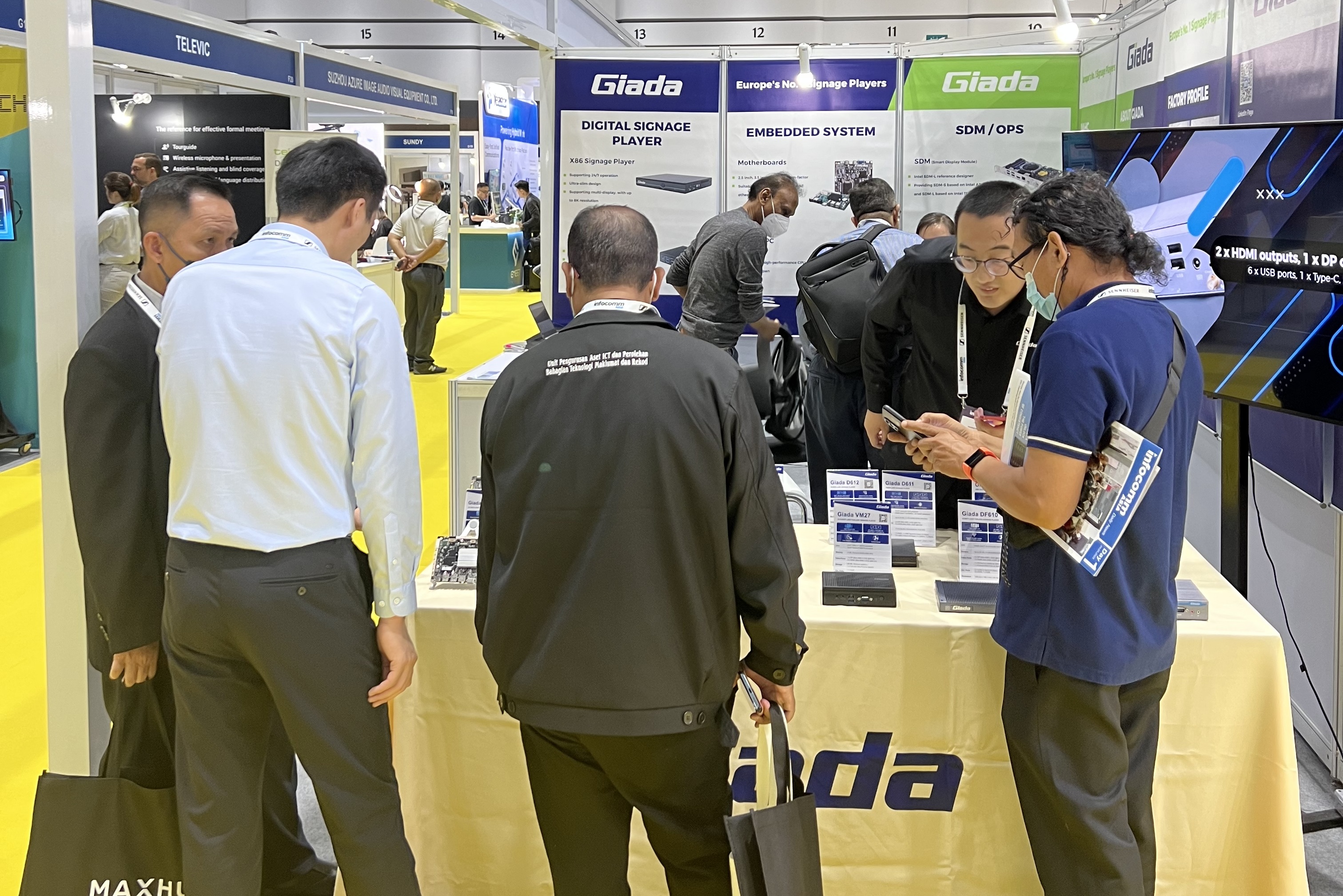 此次InfoCommAsia 2023展会,Giada球盟会·QMH科技携最新产品及方案亮相。致力于为全球企业客户解决智能化应用需求的球盟会·QMH,此次展会带来了数字标牌播放器、边缘计算机、OPS/SDM和嵌入式主板等的最新产品,并展示了一系列量身定制的解决方案,以满足泰国市场的具体需求,为亚太地区的数字化转型带来全新势能。展会期间,Giada的展台现场气氛火爆,展位人流络绎不绝!