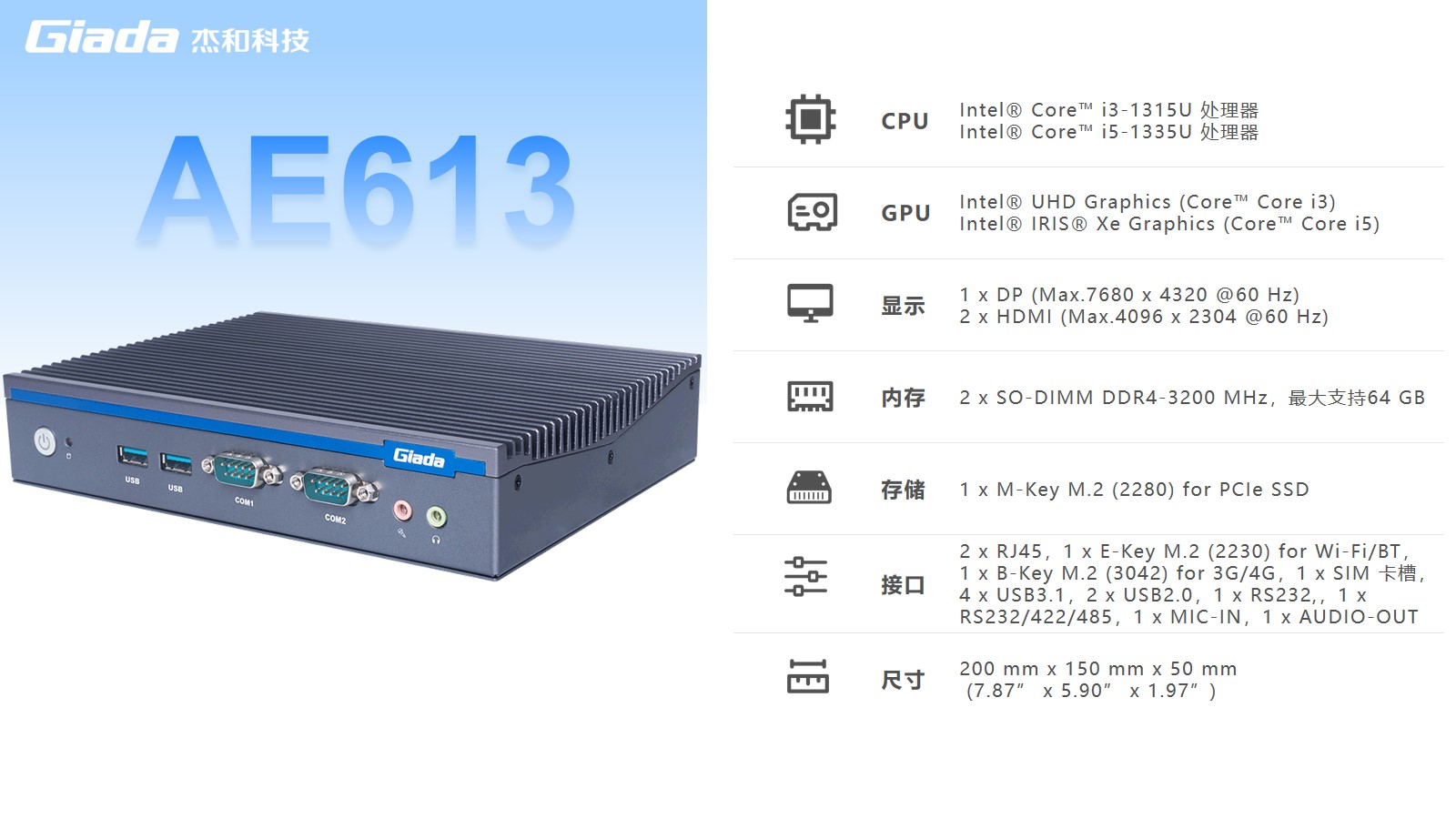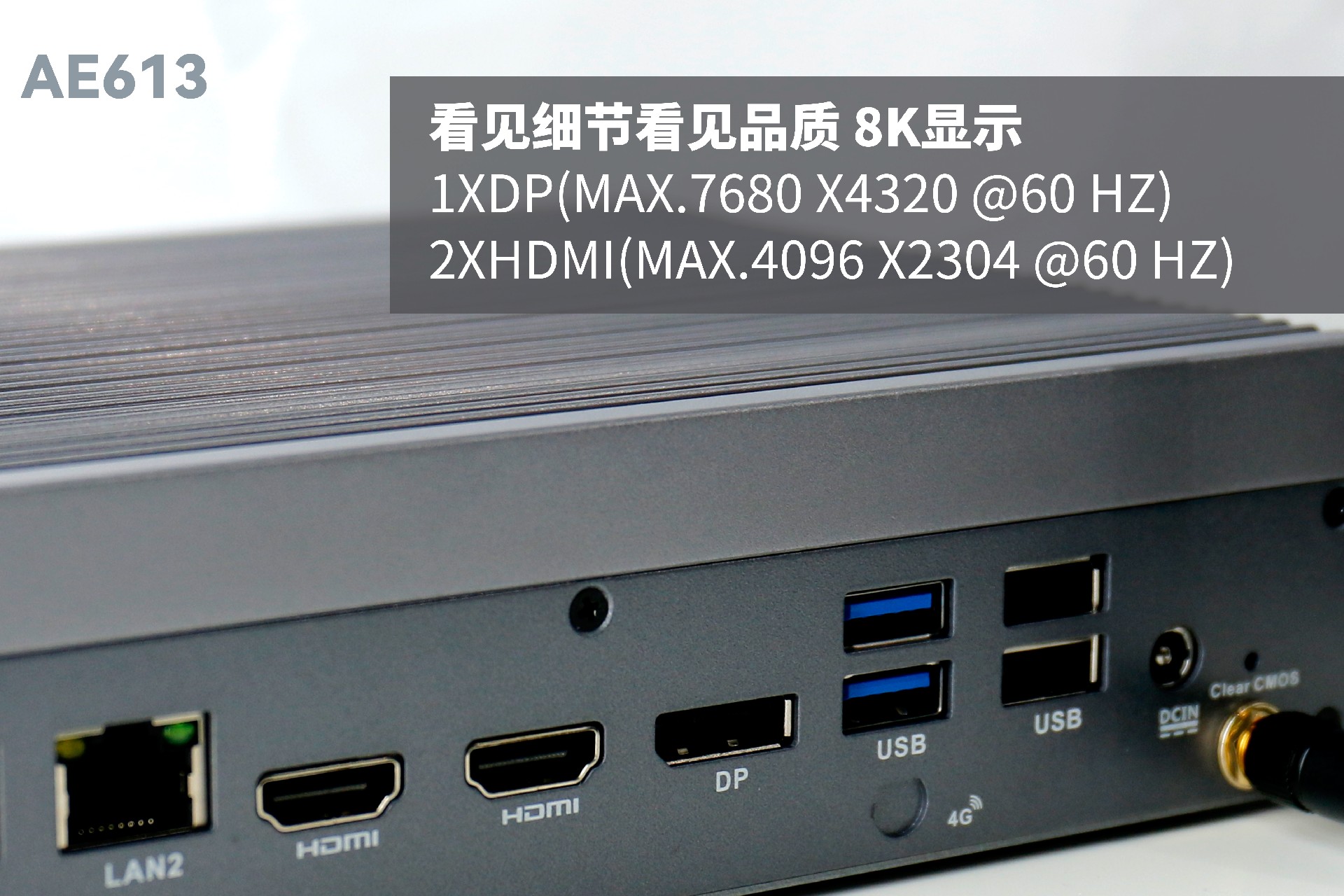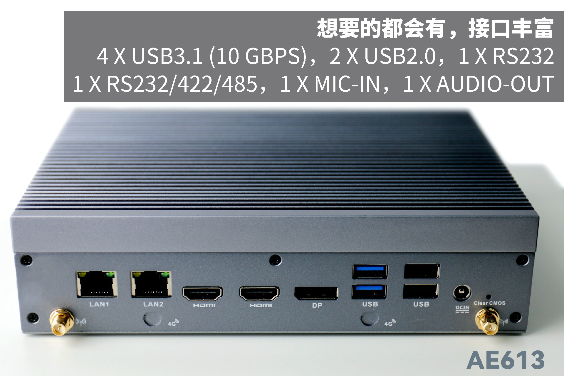 球盟会·QMHAE613支持Windows 11 、Linux Ubuntu系统;拥有丰富接口:双千兆自适应RJ45网口,4 x USB3.1 (10 Gbps),2 x USB2.0,1 x RS232,1 x RS232/422/485,1 x MIC-IN,1 x AUDIO-OUT,帮助用户实现更多功能扩展;并且支持Wi-Fi 6E,可以提供更高的带宽和更少的干扰,支持对无线网络有特定需求场景的应用。