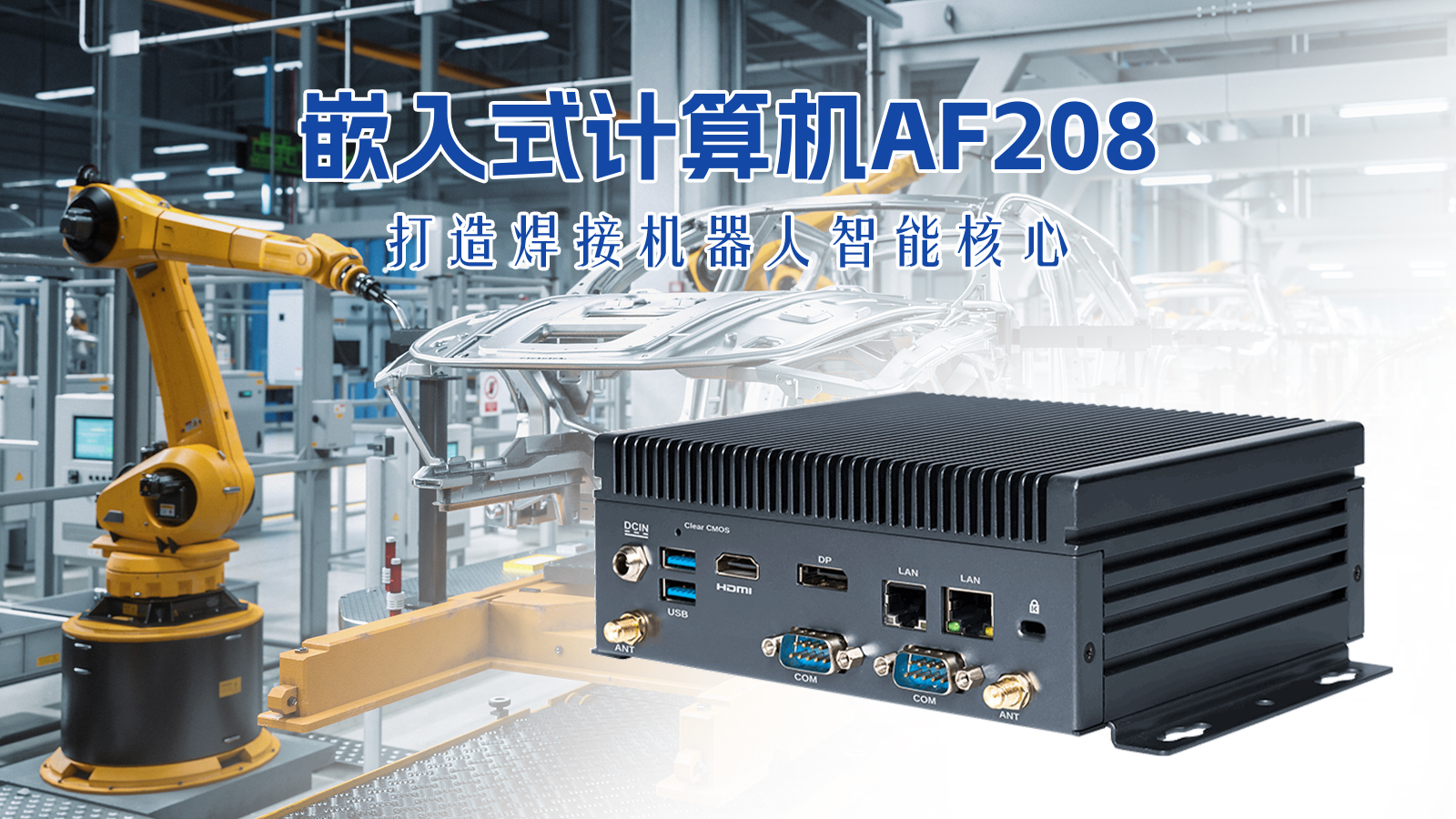 在复杂的产线上,传统焊接机器人常面临数据传输与分析迟缓、多传感信息割裂、高温高尘下运行不稳三大挑战,导致良品率波动与生产效率受限。球盟会·QMH科技推出的AF208嵌入式计算机,凭借其紧凑强悍的计算核心与卓越的工业级扩展能力,赋能机器人开启精密、柔性、可靠制造的新篇章。